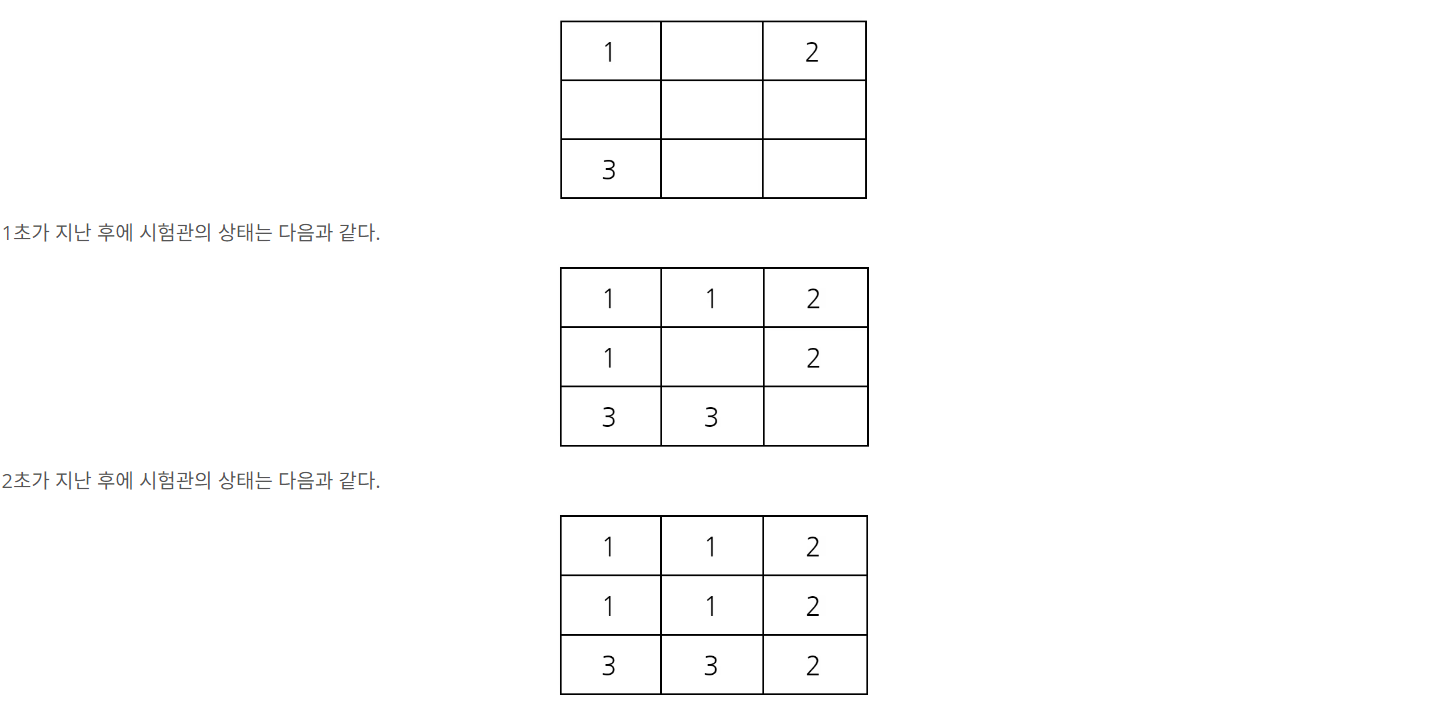 결과적으로 2초가 지난 뒤에 (3,2)에 존재하는 바이러스의 종류는 3번 바이러스다. 따라서 3을 출력하면 정답이다.